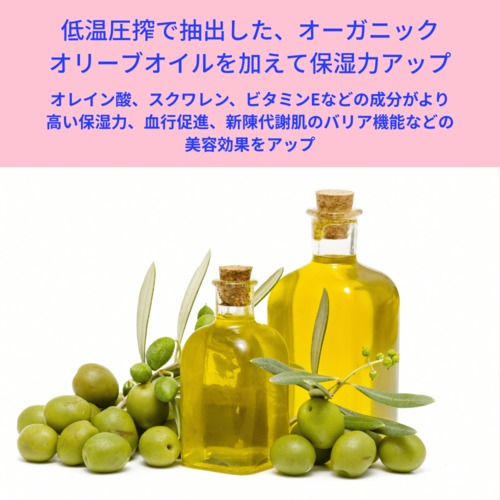 オーガニックオリーブオイルをプラスして、さらに保湿力アップ!